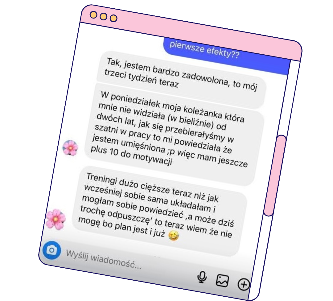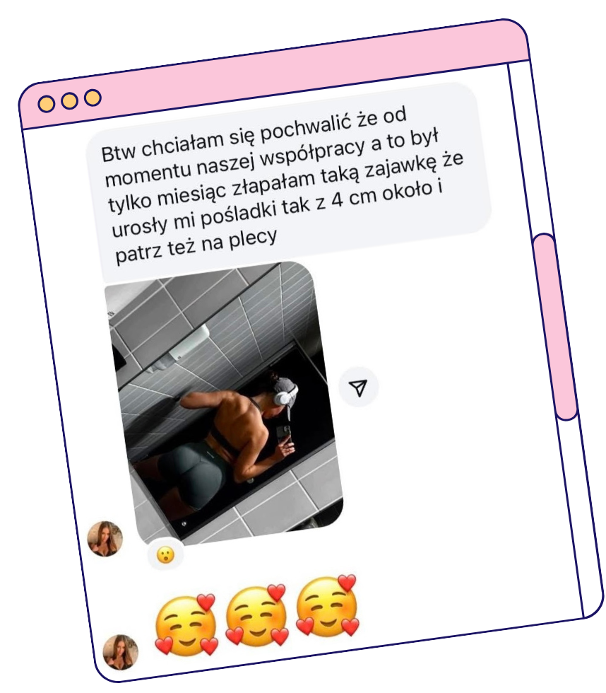 To właśnie tę metodę przekazuję Ci w moim Programie. Bo wiem, jak bardzo pragniesz tej zmiany. Wiem, że chcesz poczuć się silna, seksowna i dumna z każdego centymetra swojego ciała. I chcę, żebyś wiedziała jedno: jeśli pozwolisz mi Cię poprowadzić, spełnię Twoje marzenie o idealnej sylwetce. To nie jest tylko program treningowy. To podróż – do nowej wersji Ciebie. Tej, która już tam jest, tylko czeka, aż dasz jej szansę zabłysnąć.